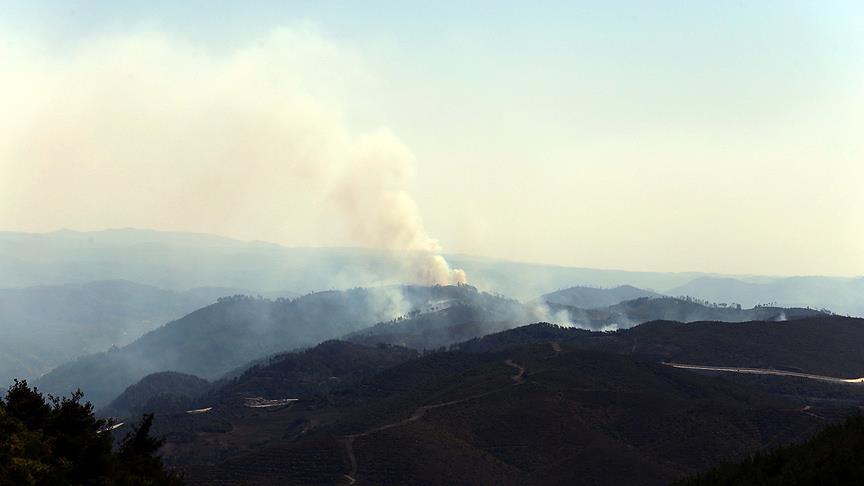 Suriye'nin Türkmendağı bölgesinde 5 gün önce 2 ayrı noktada başlayan ve Hatay'ın Yayladağı ilçesi sınırına bir kilometre kadar yaklaşan orman yangını etkisini sürdürüyor.