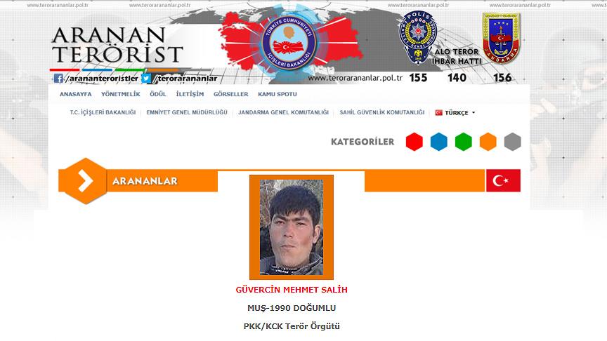 Bu teröristlerden kimliği belirlenen "Piro" kod adlı Mehmet Salih Güvercin'in İçişleri Bakanlığının "Aranan Teröristler Listesi"nin turuncu kategorisinde yer aldığı belirtildi.