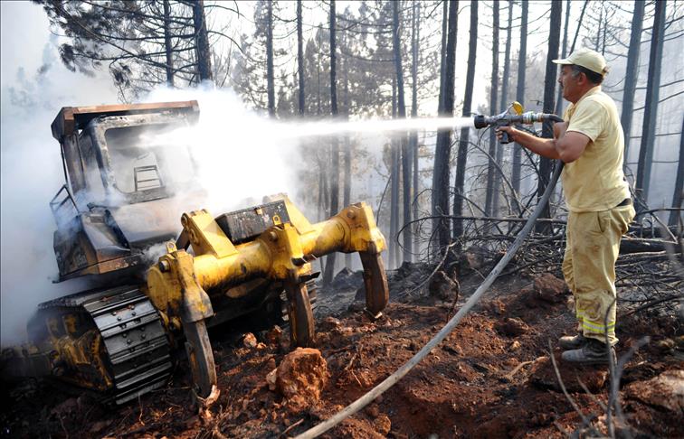 Bu arada, yangın söndürme çalışmalarında yol açma ve çevreleme için kullanılan Seyfettin Dinçer'in kullandığı dozer alevlerin arasında kalarak yandı. Aracın operatörü Dinçer, orman işçileri tarafından sağ kurtarıldı. Dinçer, olayda yara almadı.
