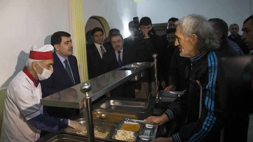 Şahin, daha sonra yemekhaneye geçerek, akşam yemeği için sırada bekleyen vatandaşlara yemek dağıttı. Vasip Şahin, otel sakinleriyle sohbet ederek, ihtiyaçları olup olmadığını sordu.