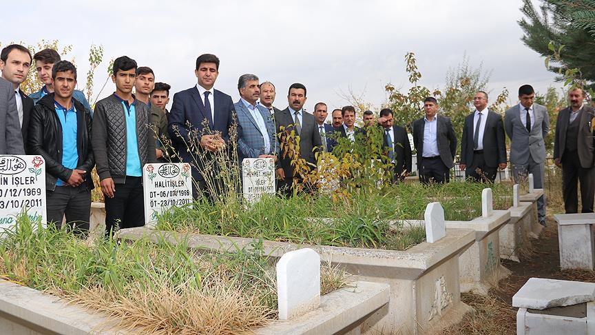 İlçe Milli Eğitim Müdürü Erol Şimşek, Milli Eğitim Şube Müdürü Kurbanı Özdaş, öğretmenler, öğrenciler ve aileler depremde hayatını kaybedenlerin mezarlarının bulunduğu Seyyit Muhammed Mezarlığı'na geldi.