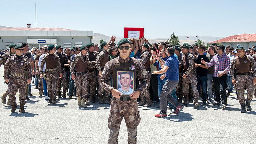 Van'da PKK'lı teröristlere yönelik operasyonda yaralanan ve tedavi gördüğü hastanede şehit olan özel harekat polisi için tören düzenlendi.