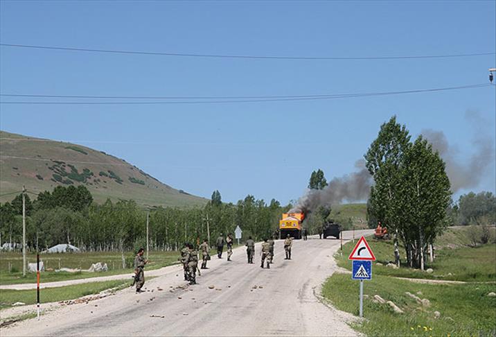 Terör örgütü yandaşlarının, yoldaki hendekleri kapatmak üzere bölgeye giden İl Özel İdaresine ait iş makinelerini ateşe vererek 2 işçi ile 4 askeri taş ve sopalarla yaralamasının ardından herhangi bir can kaybı yaşanmaması için güvenlik güçleri geri çekildi.