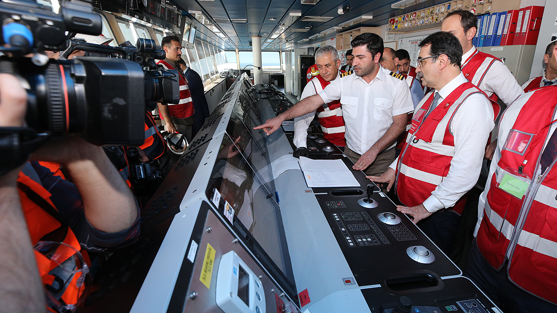 "Maalesef GKRY bu teklifi reddetti. Bu ciddi teklifi yeniden değerlendirmek suretiyle sonuç almak üzere tarafların bir araya gelmesinin, her iki tarafın da menfaatine olacağını bir kez daha ifade etmek istiyorum. Garantör ülkeler olarak gerektiğinde bu toplantılara destek vermeye hazır olduğumuzu da bir kez daha huzurlarınızda ifade etmek istiyorum. İnşallah buradan yakın bir süre içerisinde müjdeli haberler veririz ama tabi bu arama işi riskli bir iş, bilinmezleri çok. Bu bilinmezleri azaltmak için teknolojinin son imkanlarını burada kullanıyoruz. Şu anda güvertesinde bulunduğumuz bu sondaj gemisi dünya çapında 15-16 gemiden birisi. Bu operasyonları yapabilen 5-6 ülkeden birisi durumundayız. Türkiye Petrolleri bu sondajlarla önemli bir tecrübe ve birikim de kazanmış oluyor. Ağırlıklı Türk personelle bu işlemleri yerine getiriyoruz ve inşallah en kısa süre içerisinde burada gördüğünüz personelin tamamı belki Türk vatandaşlarından oluşacak hale gelmiş olacak.”