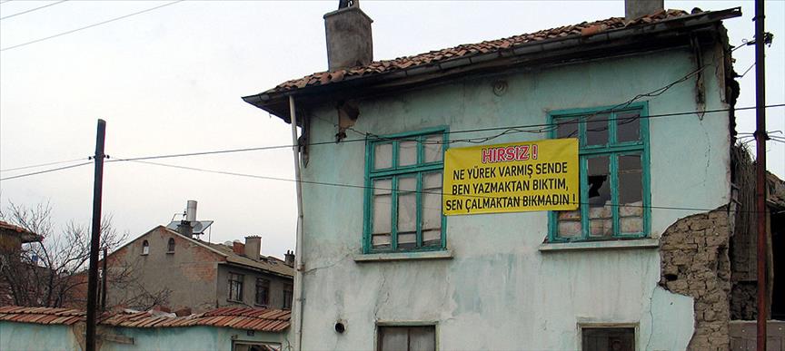 Ev sahibi Mehmet Peker, pankarta bu kez ''Hırsız! Ne yürek varmış sende. Ben yazmaktan bıktım, sen çalmaktan bıkmadın!'' yazdı.