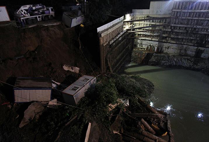 Sarıyer'de özel bir öğrenci yurdu inşaatının temelinde toprak kayması oldu.