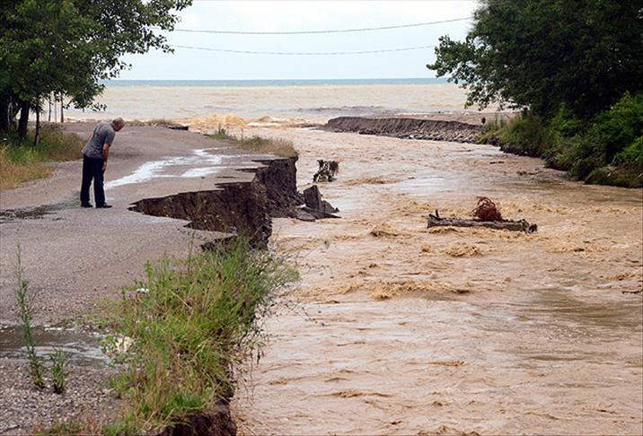 Göbü Deresi'nin taşması nedeniyle sahil güzergahındaki karayolunda hasar oluştu, elektrik direkleri devrildi.