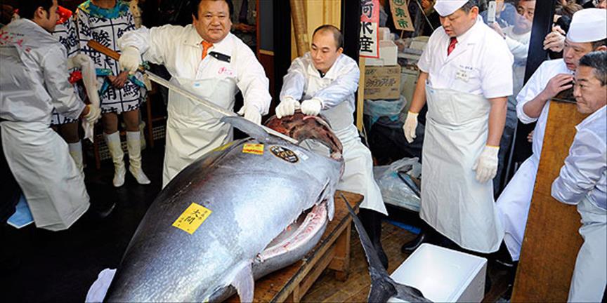 Japonya'nın başkenti Tokyo'daki, dünyanın en büyük balık pazarı Tsukiji'de yeni yılda yapılan ilk açık artırmada bir ton balığı 1,4 milyon TL'ye alıcı buldu.