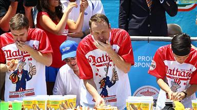 Erkeklerde ise 95 kilo ağırlığında ve 28 yaşındaki Joey Chestnut, 10 dakikada 68 sosisli sandviç yiyerek şampiyonluğu 6. kez kazandı.