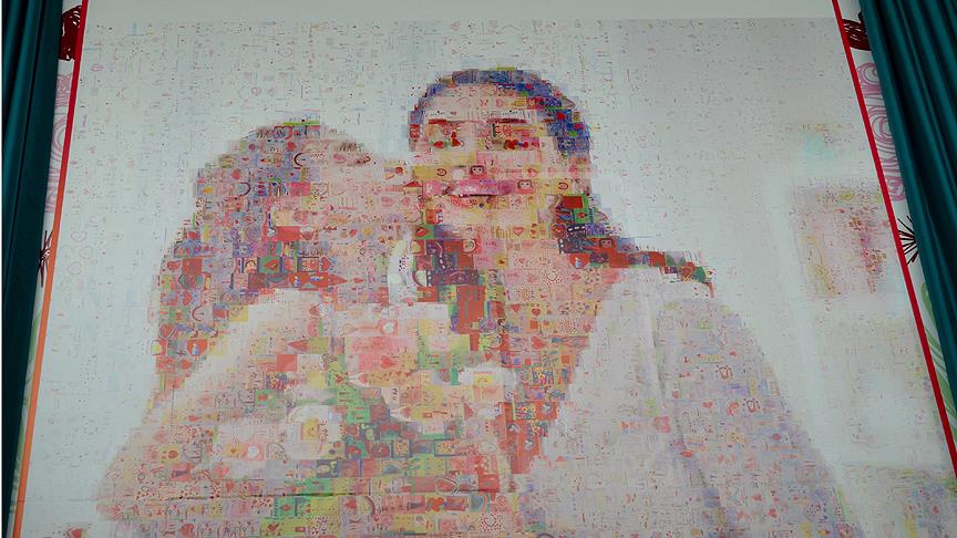 Bir süre alışveriş merkezinde sergilenecek dev Anneler Günü resmi, büyük-küçük her yaştan ziyaretçiyi bekliyor.