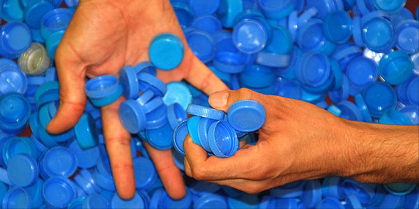 Ambalaj atıklarının işlenerek yeniden kullanılabilir hale dönüştürülmesi için kurulan tesislerde, farklı işlemlerden geçen plastik kapaklar, ayrıştırma ve küçük parçalara bölünmesinin ardından yumuşatılarak işlenebilir hale getiriliyor. Tesislerde 200 derecenin üzerindeki bir ısıda tamamen eritilen plastik kapaklar, yumuşak dokulu sicimler haline getirildikten sonra ham maddeye dönüştürülüyor.