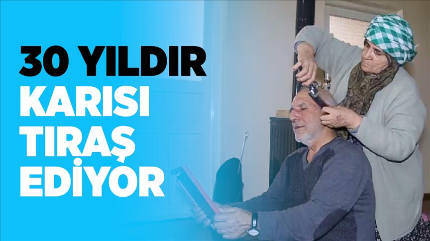 Merkeze bağlı Karaağaç Mahallesi'nde emekli memur 73 yaşındaki Özcan'ın saç tıraşını, 1987 yılından beri eşi Fatma Özcan yapıyor.