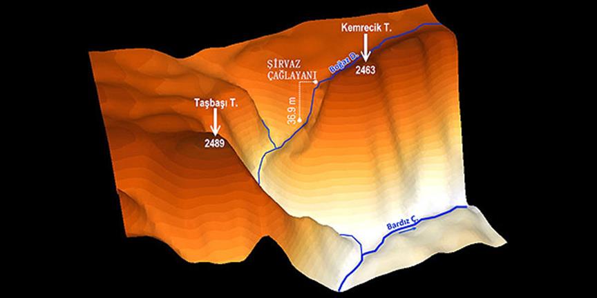 ''Yapılan ölçümlere göre 37 metre yüksekliğine sahip Şirvaz Çağlayanı, Tortum Şelalesi'nden sonra Erzurum ilinde su düşüşü bulunan ikinci en yüksek eğim kırığıdır. Bardız Çayı havzası dahilinde, Boğaz Dere Vadisinde yer alan çağlayan 2 bin 268-2 bin 305 metre yükseltileri arasında yer almaktadır. Yapılan tespitlere göre çağlayan özellikle haziran ayında en muhteşem görünümünü kazanmaktadır. Saha çalışmalarımızda böyle bir çağlayanla karşılaşmak bizi sevindirdi.''