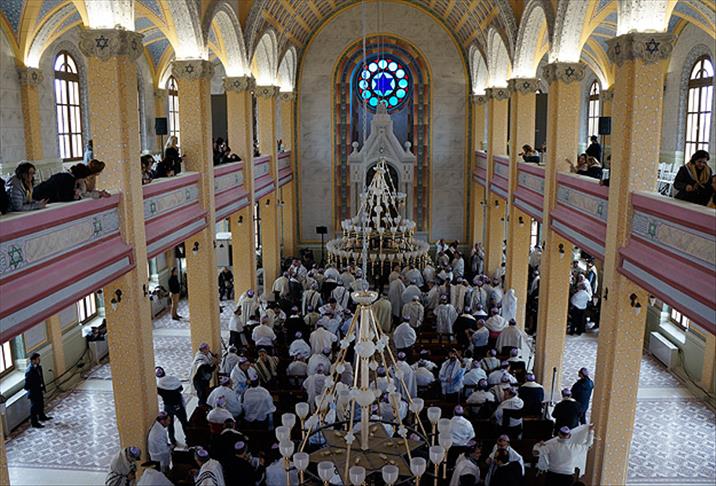 Tevrat'ın da getirildiği Büyük Sinagog'da 10 Emir ve ilahiler okundu.