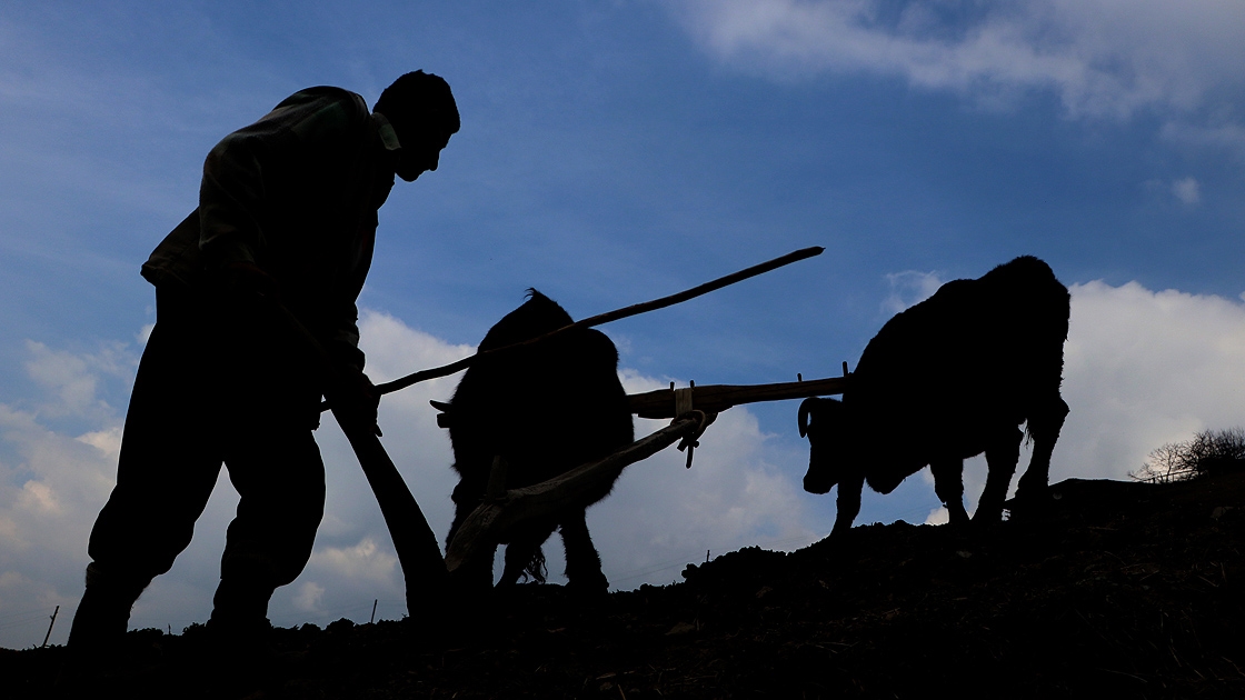 Öküzlerin yaşlı olması nedeniyle bakımlarını titizlikle yapan Erim, onları elleriyle besliyor. Erim, tarlasını öküzleriyle kara sabanla sürüyor.