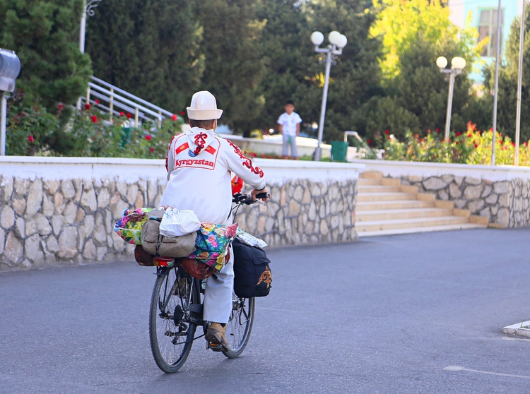 Kırgızistan'da 75 yaşındaki Mamıt Taştanov, 29 Eylül-2 Ekim arasında Türk Dünyası Kültür Başkenti Bursa'nın İznik ilçesinde düzenlenecek 4. Dünya Göçebe Oyunlarına katılmak için bisikletle yola çıktı.