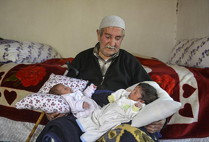 Yaşına rağmen eşini bir an olsun yalnız bırakmayan ve çocuklarına gözü gibi bakan Sevinç, bebeklere mamalarını da kendi elleriyle yediriyor.