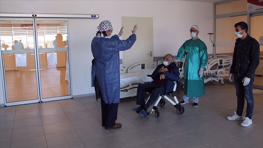 İyileşen hasta, sağlık çalışanlarının alkışları eşliğinde evine uğurlandı.