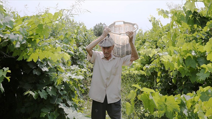 Üzüm bağının tüm işleriyle ilgilenen Duygulu, azmiyle genç çiftçilere örnek oluyor.