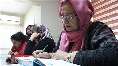 Yalova'da okuma yazma kursuna katılan 92 yaşındaki Saniye Göre, sertifikasını aldı.