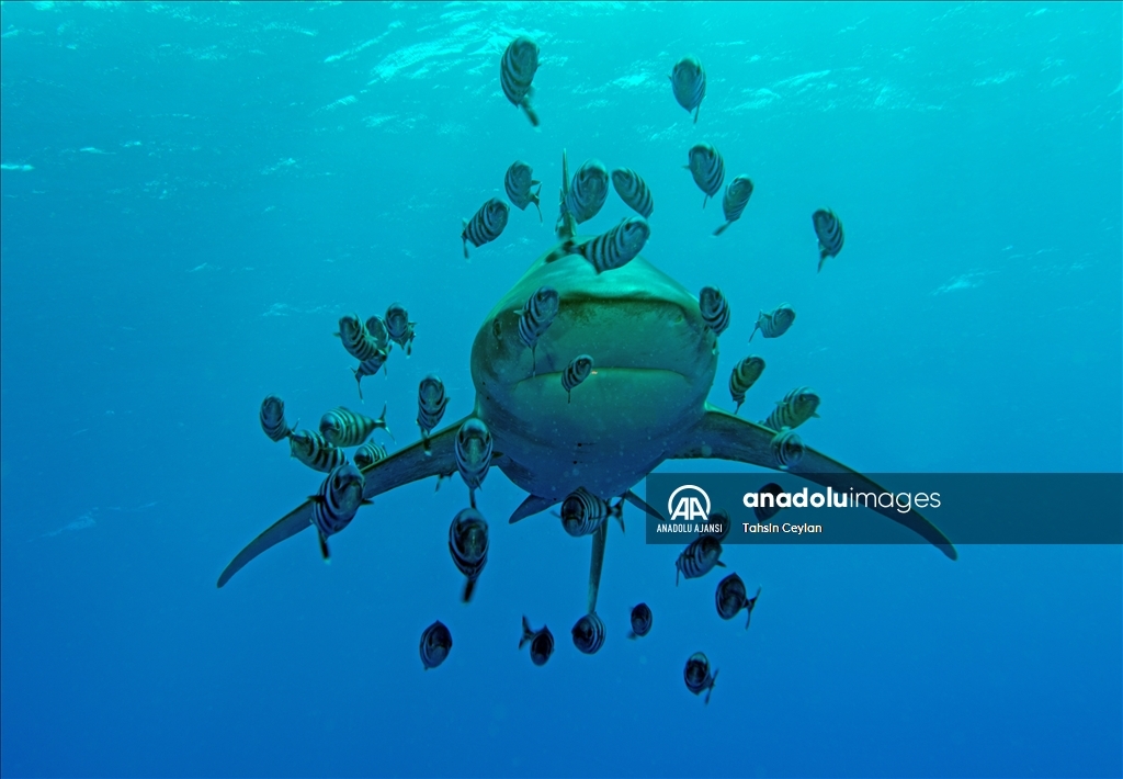 Anadolu Ajansı (AA) Su Altı Görüntü Yönetmeni ve Belgesel Yapımcısı Tahsin Ceylan, Kızıldeniz'de Marsa Alam bölgesindeki Elphinstone dalış noktasında köpekbalıklarının bulunduğu alanda dalış gerçekleştirdi. Güvenlik önlemi ve rehber eşliğinde gerçekleştirilen dalışta Tahsin Ceylan, köpekbalıklarını görüntüledi.