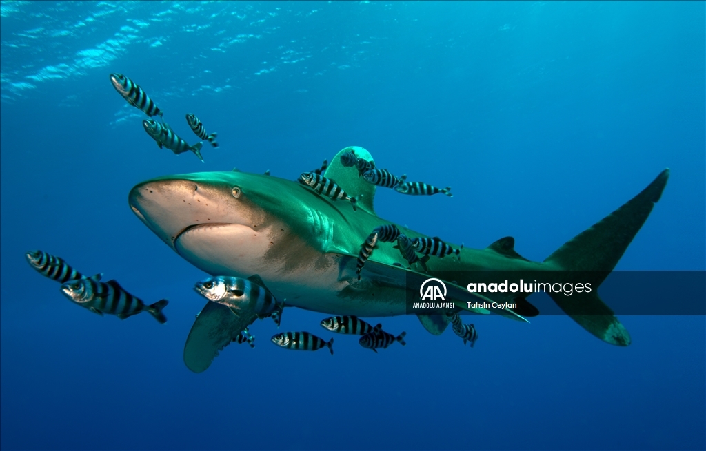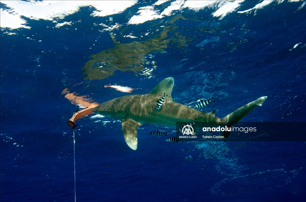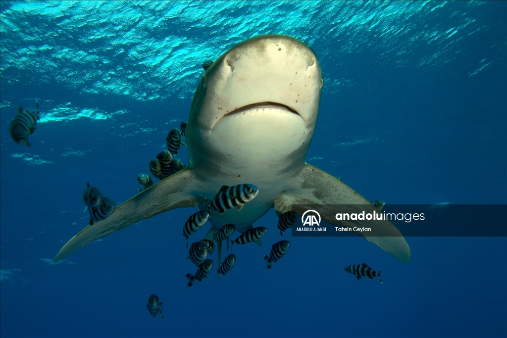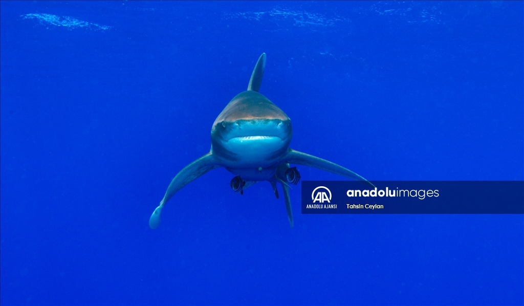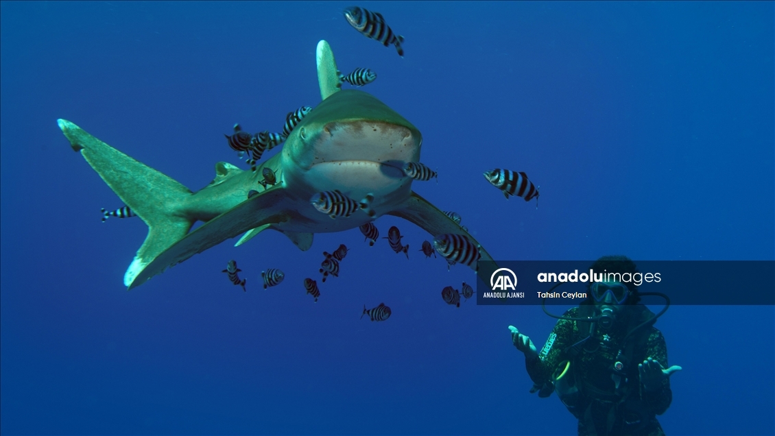 Anadolu Ajansı (AA) Su Altı Görüntü Yönetmeni ve Belgesel Yapımcısı Tahsin Ceylan, Kızıldeniz'de Marsa Alam bölgesindeki Elphinstone dalış noktasında köpekbalıklarının bulunduğu alanda dalış gerçekleştirdi.