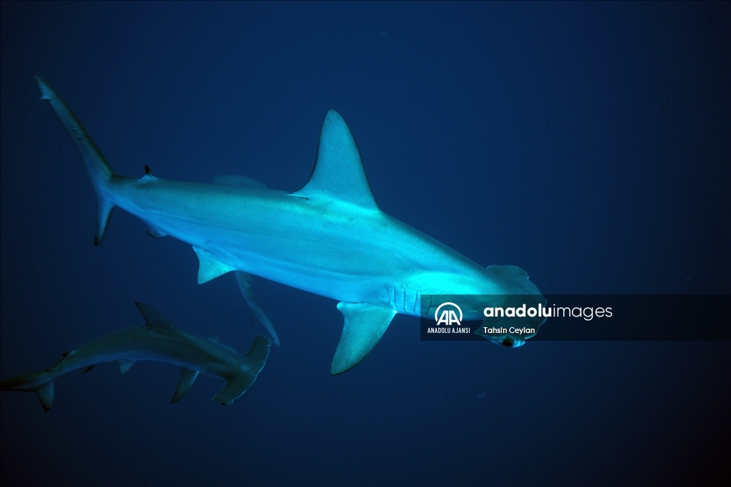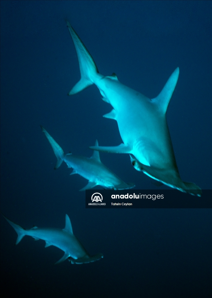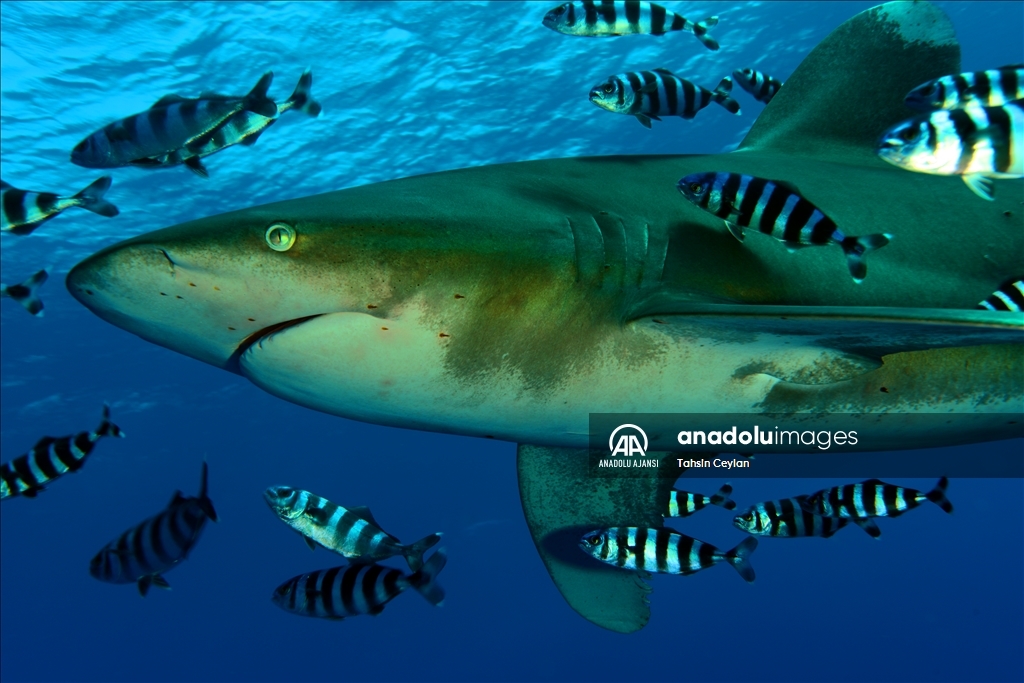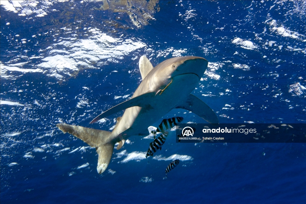 Anadolu Ajansı (AA) Su Altı Görüntü Yönetmeni ve Belgesel Yapımcısı Tahsin Ceylan, Kızıldeniz'de Marsa Alam bölgesindeki Elphinstone dalış noktasında köpekbalıklarının bulunduğu alanda dalış gerçekleştirdi.