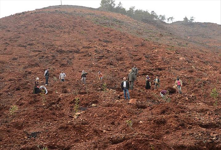 Geçen yıl sarp bir arazide çıkan ve rüzgarın da etkisiyle 140 hektar alana zarar veren yangından sonra Orman Genel Müdürlüğü, araziyi yeniden ağaçlandırmak için çalışmalara başladı.