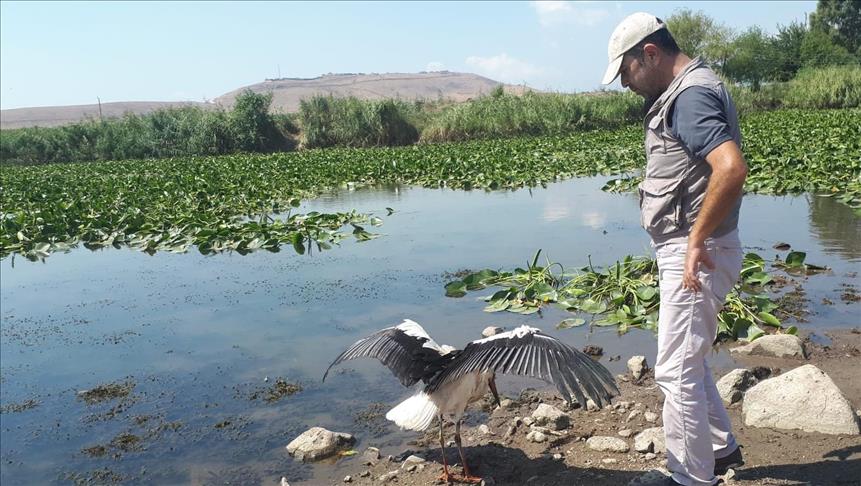 Zeytin Dalı Harekatı kapsamında terörden temizlenen Afrin'de görevli askerlerin kırsal alanda bulduğu hasta leylek, Hatay Tabiatı Koruma Derneğine teslim edildi.