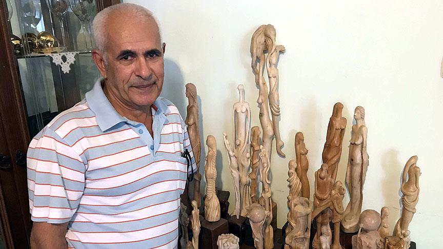 Mersin'de yaşayan emekli resim öğretmeni Hasan Canel, 14 yıldır ormanlık alanlardan topladığı ağaç parçalarını ahşap oyma sanatıyla işleyerek 320'e yakın insan figürü eser yaptı.