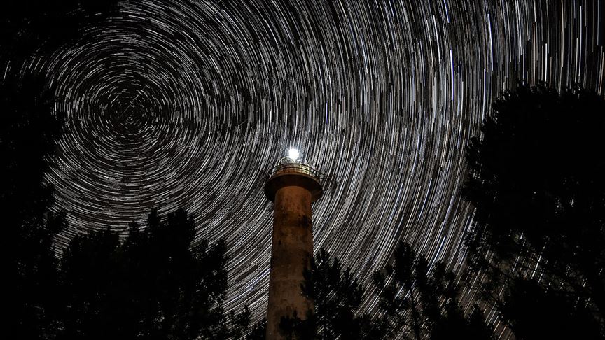 Civaburnu Deniz Feneri, yıldızlarla birlikte güzel görüntü oluşturdu.