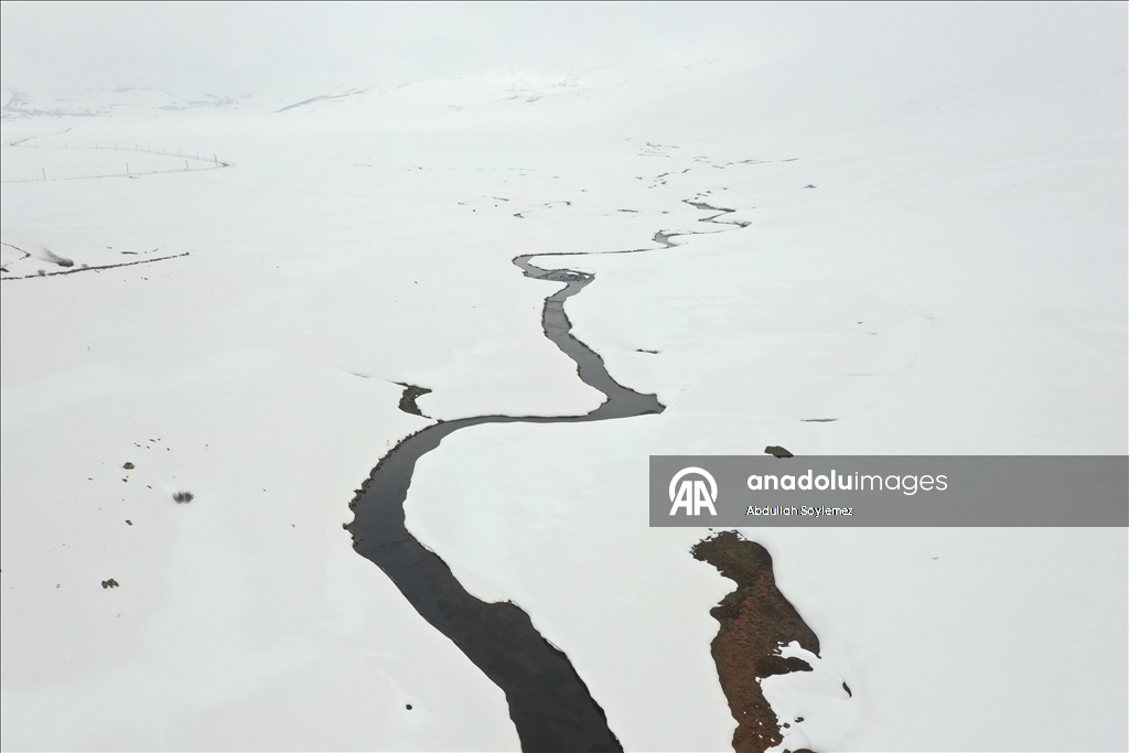 Yaz aylarında yaylacıların çevresine çadır kurup hayvancılık yaptığı mendereslerin bulunduğu bölgede, bu yıl kar kalınlığı yaklaşık 1 metreye ulaştı.