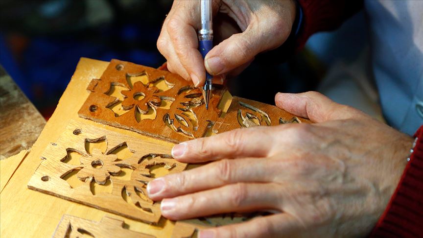 Eski Cami - Orta Cami Mahallesindeki Yorgancıoğlu Pasajındaki atölyesinde günün büyük bölümünü geçiren 65 yaşındaki emekli öğretmen Tevfik Talaşmanlı, kayın, ardıç ve kavak kontrplak parçalarını elinden hiç indirmediği kıl testeresi ile dantel gibi işliyor.