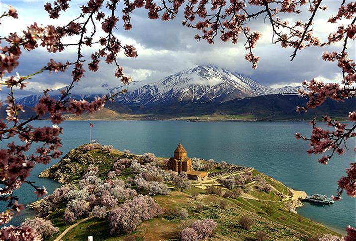 Türkiye'nin en büyük gölündeki dört adadan biri olan ve Vaspurakan Kralı 1. Gagik tarafından 915-921 yıllarında yaptırılan Ermeni kilisesinin de bulunduğu Akdamar Adası, badem ve kayısı ağaçlarının çiçek açmasıyla farklı bir güzelliğe büründü.