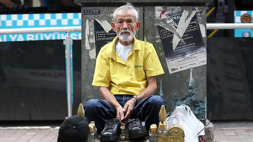 Antalya'da ayakkabı boyacılığı yapan 80 yaşındaki Mustafa Öz, kimseye muhtaç olmadan ekmeğini kazanmanın mutluluğunu yaşıyor.