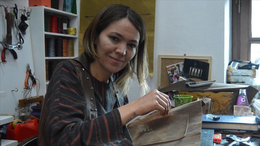 Afyonkarahisar'da iki yıl önce restorasyonu tamamlanan tarihi Taşhan'da sermayesi olmadığı için hayalini kurduğu deri atölyesini arkadaşlarının desteğiyle gerçeğe dönüştüren Fatma Kıvrak, şimdilerde ise yurt içi ve yurt dışından sipariş alıyor.
