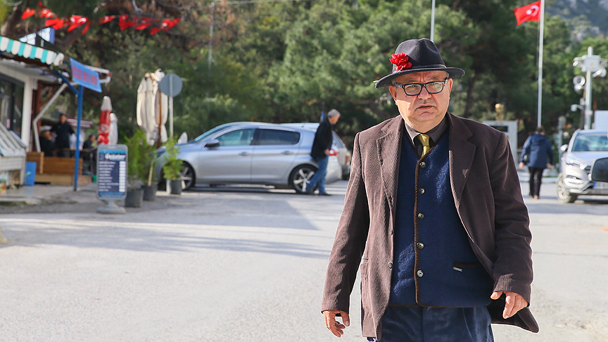 Karaburun Belediyesi Yazı İşleri Müdürlüğü görevini yürüten Hüseyin Cem Liman, herkesin dikkatini çeken "kırmızı karanfilli şapkası"nı yanından hiç ayırmıyor.