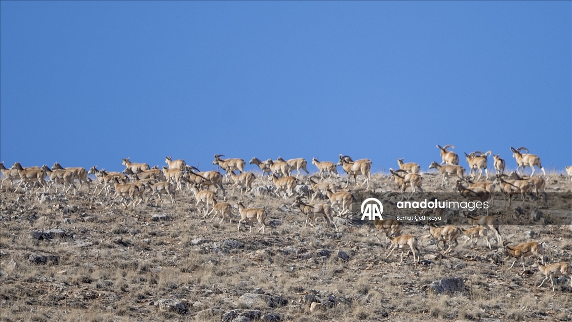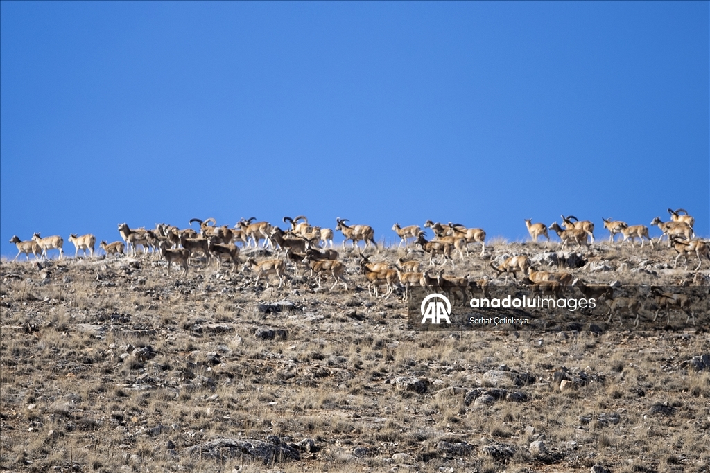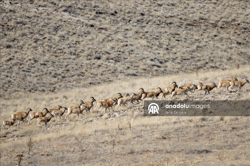 Heybetli yapılarıyla dikkati çeken, 1000 ve 1700 rakımlı dağ silsilesinin yer aldığı bozkırlarda gruplar halinde yaşayan Anadolu yaban koyunları, varlıklarını 60 bin hektarlık yaşam alanlarında sürdürüyor.