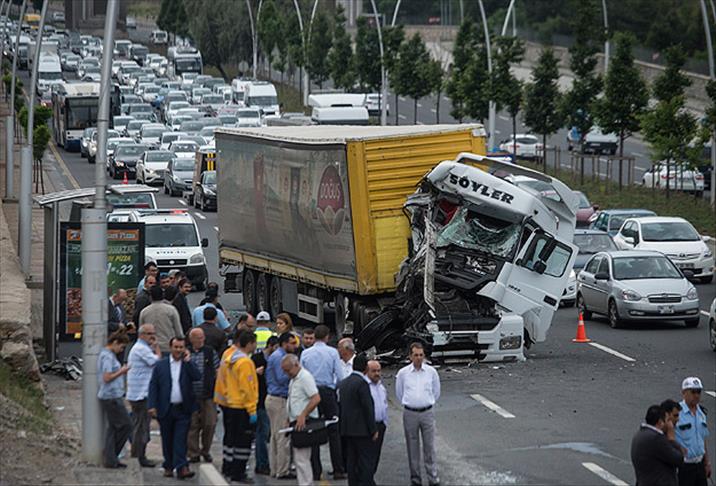 Ankara'da tırın belediye otobüsüne çarpması sonucu 12 kişi yaralandı.