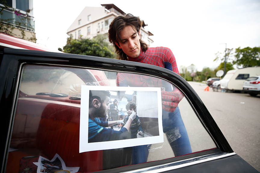 Kostümünü bu kez "Savaşa hayır" demek için giyen Soylu, camlarına savaştan etkilenen çocukların fotoğraflarını yapıştırdığı otomobiliyle özellikle turistlerin yoğun olduğu bölgelerde gezerek savaşın acı yüzünü insanlara göstermeyi amaçlıyor.