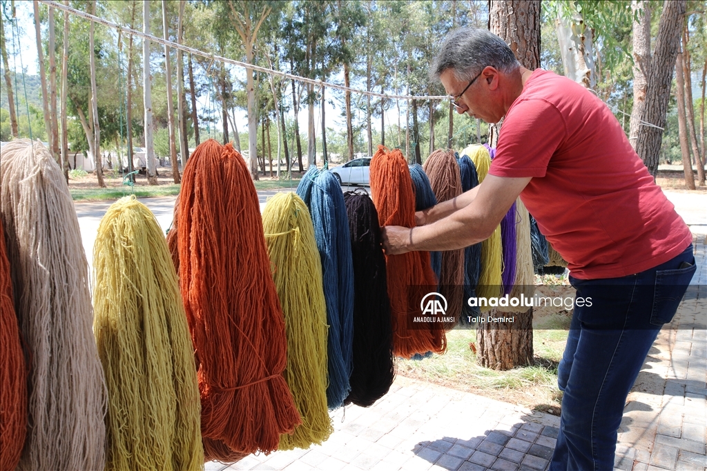 Koyundan kırkılan yün (yapağı) yıkanarak, güneşte kurutuluyor. Ayrıştırılan bu yün, kirmende (pamuk eğirmeye yarayan, tahtadan yapılmış bir tür iğ) eğrilerek, iplik haline getiriliyor. Elde edilen ip yumakları, kazanlarda boyanıyor. Boyama işlemi sırasında doğal bitkiler (çörtük, nar kabuğu, soğan kabuğu, indigo, kök, cehri, ceviz, muhabbet çiçeği) kullanılıyor.