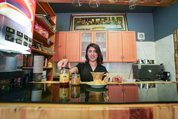 Arıcılık yapan kadın girişimci ürünleriyle hazırladığı içecekleri kafesinde servis ediyor
