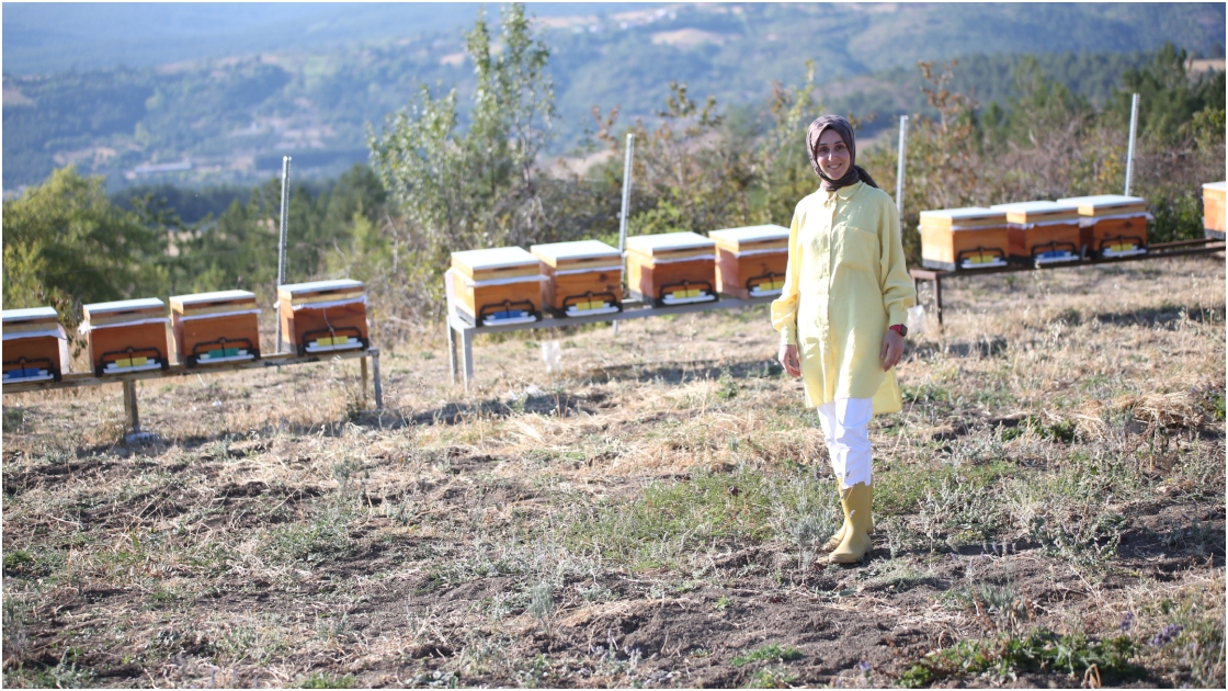İstanbul'da yaşayan Emine Eymür, hafta sonları kovanlarının bulunduğu yaklaşık 450 kilometre mesafedeki Kastamonu'nun Araç ilçesine bağlı Boğdam köyüne giderek arılarının bakımını yapıyor.