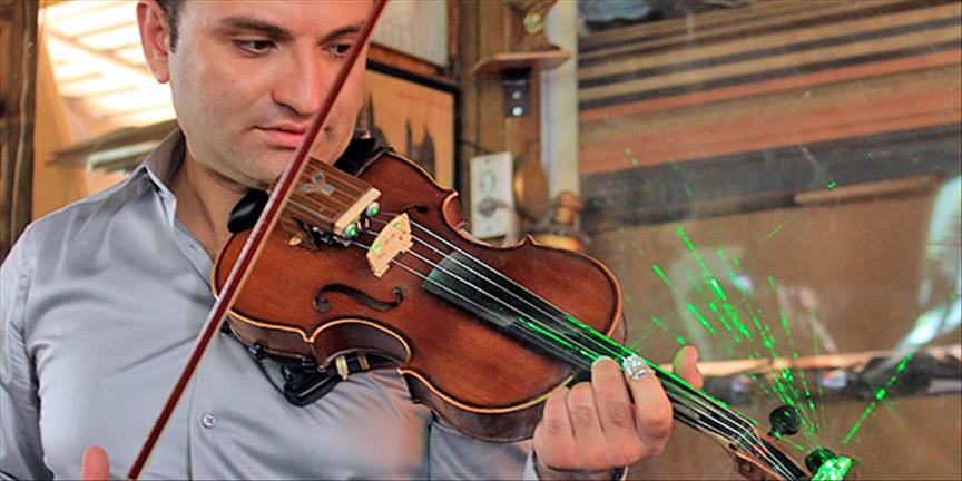 5 yıl önce keman çalmaya başlayan 30 yaşındaki Yurdaer Aydın, kemana görsellik kazandırmak için lazer ışınlarından yararlandı.***
