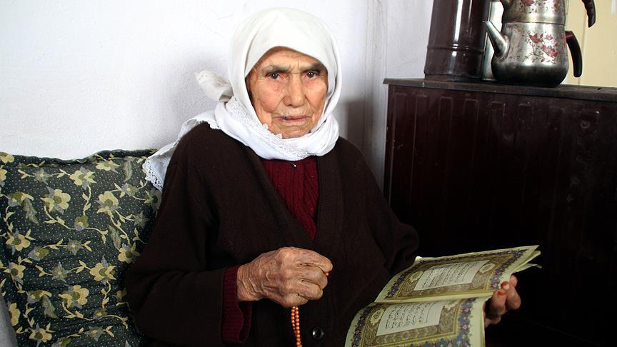 Elinde Kur'an-ı Kerim her gün büyük bir hevesle mahallelerinde açılan kursun yolunu tutan 102 yaşındaki Fatma Açlan, bu davranışıyla da gençlere örnek olmaya çalışıyor.