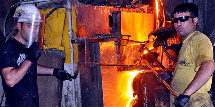 Kayseri Organize Sanayi Bölgesi'nde kurulu, ısı yalıtım malzemeleri üretilen fabrikadaki 1600-1700 derecelik ısıya sahip ocağın önünde çalışan kupolacılar, sıcakla imtihanlarını AA muhabirine anlattı.