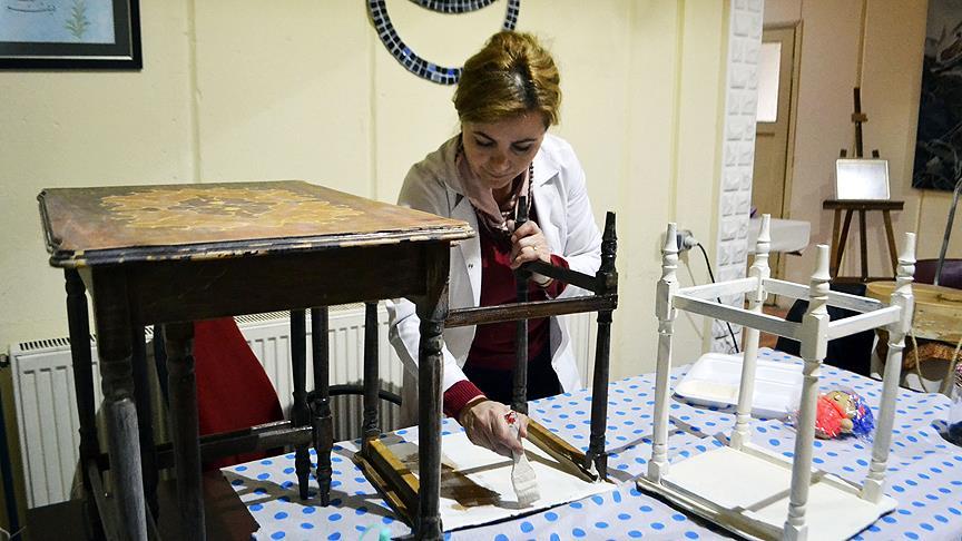 70 kursiyerin yer aldığı kursta, eski çoraplardan bebekler, bezlerden seccade, çanta, yatak örtüsü yapılıyor, eskiyen, kullanılmayan sehpa, sandalye, masalar yenilenip ilk günkü haline getiriliyor. Kurs bitiminde kursiyerler, ihtiyacı olan kursiyerin evine gidip yenilenmesi gereken oda ve banyosunu baştan aşağı elden geçiriyor.