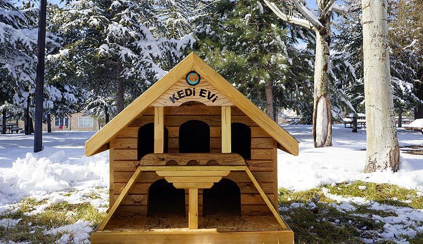 Nevşehir’de, kış mevsiminde korunaklı barınma yeri bulmakta güçlük çeken sokak kedileri için belediye imkanlarıyla atık kerestelerden kulübeler üretiliyor.