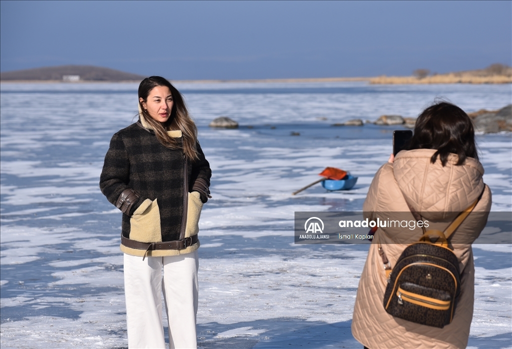 Ardahan ile Kars arasındaki Çıldır Gölü, son günlerde etkili olan dondurucu soğukların etkisiyle kısmen buz tuttu.