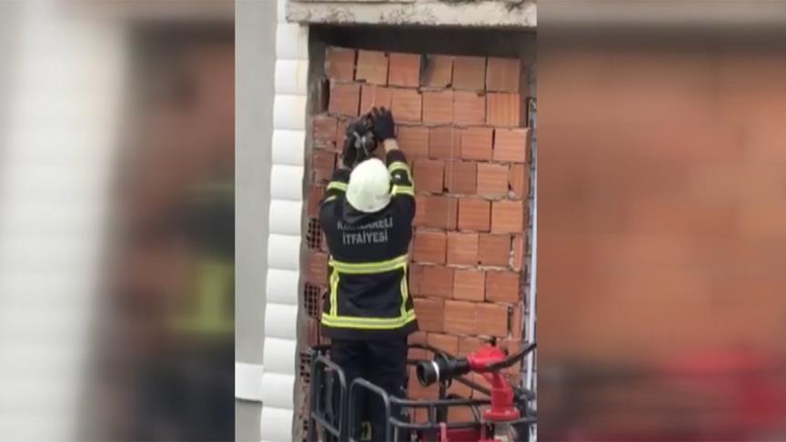 Kırklareli'nde bir inşaatın duvarındaki ipe ayakları dolanarak mahsur kalan yavru güvercin, itfaiye ekiplerince kurtarıldı.